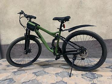 Срочно!! продаю горныйн велосипед| состояние хороший б/у| 2 амортизатора работают отлично в комплекте отдаётся сумочки и задние фары рамка зделан из твёрдого алюминий | многоскоростной передачи ...