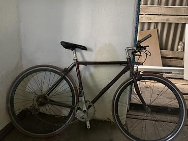 - Размер колес: ориентировочно 28" (700C) с узкими шоссейными покрышками бордового цвета