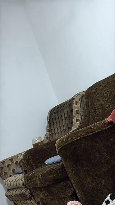 - Два мягких кресла разной обивки: