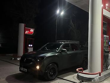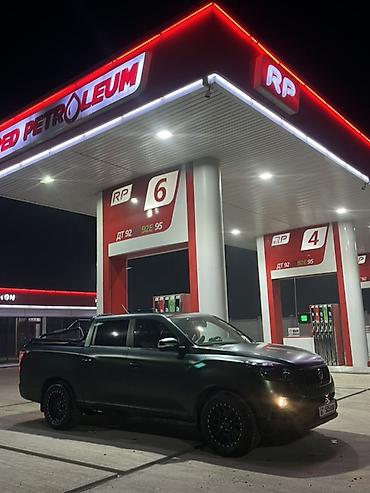 Пикап (двойная кабина) в матовом зелёном цвете с чёрными акцентами.