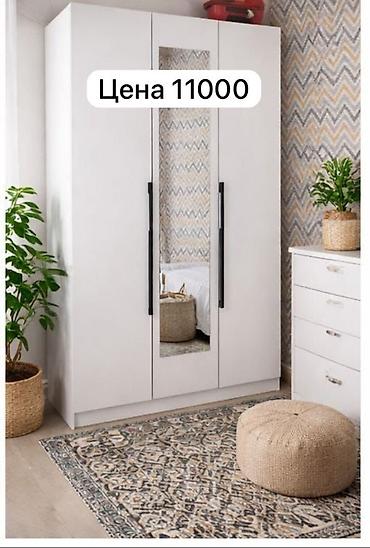 Шкаф платяной, 3-дверный, белый, с зеркалом