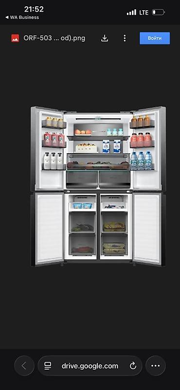 - Формат: 4 двери (верх — холодильная камера с двойными распашными дверями, низ — две независимые морозильные секции с распашными дверями).