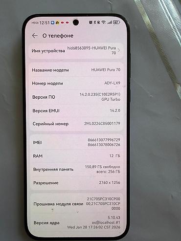 HUAWEI Pura 70 (модель ADY‑LX9)
