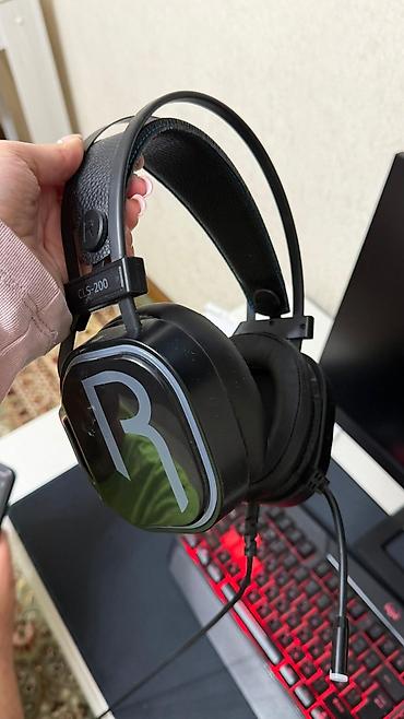 - Гарнитура с микрофоном (модель помечена как CLS-200, логотип «R»). Закрытые мягкие амбушюры, подвесное оголовье, гибкий выносной микрофон, проводное подключение.