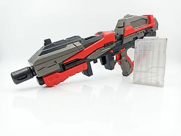 Игрушечный автомат (электрический бластер) для стрельбы мягкими шариками. Основные особенности: - Электропривод с питанием от литиевой батареи 7.4V. - Автоматическая стрельба. - Подсветка ствола с...