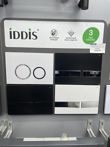 - Двухрежимная кнопка смыва (эконом/полный), совместимая с большинством инсталляций; на витрине представлены варианты панелей IDDIS в белом/черном/хром исполнении.