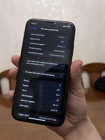 IPhone 11, 64 ГБ, черный Характеристики и детали: - Память: 64 ГБ (доступно ~8,45 ГБ на момент фото) - Серийный номер на скрине: DX3JGH59N735 - Экран: , Liquid Retina HD, True Tone, Haptic Touch -...