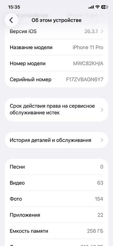 IPhone 11 Pro, 256 ГБ - Цвет: серебристый - Модель: iPhone 11 Pro (MWAU2LL/A) - Версия iOS на фото: 18.6.2 - Экран с вырезом под Face ID - Тройная основная камера с вспышкой, широкоугольный, ультр...