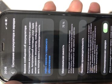 - Акумулятор: максимальная емкость 75% (показано в разделе «Состояние аккумулятора»), включена «Оптимизированная зарядка»