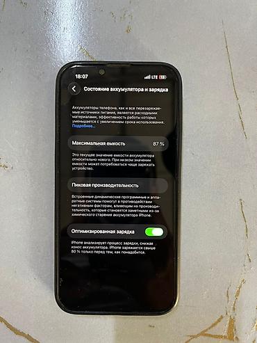 - Аккумулятор: максимальная ёмкость 87% (скриншот в галерее), активна функция «Оптимизированная зарядка»