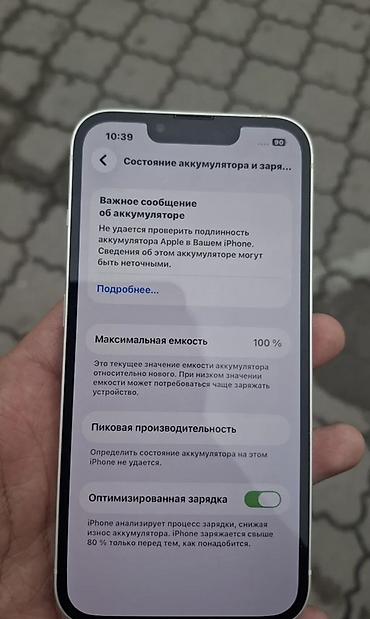 • IPhone 13, Б/у, 128 ГБ, Белый, Зарядное устройство, Защитное стекло, Чехол, 70 %