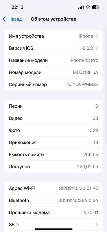 IPhone 13 Pro, Б/у, 256 ГБ, Sierra Blue