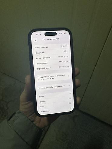 IPhone 14 Pro Память 256 Аккумулятор 86% не вскрывался Состояние идеальное Гарантия имеется: 15 дней на проверку и год сервизного обслуживания