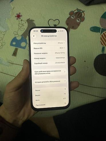 Срочно продаю Apple 🍏 14 pro В цвете black 🖤 В идеальном техническом состоянии Не вскрытый все родное Память 128 Емкость 🔋-80 True-Tone ✅ Face ID ✅ Зарегестрирован в ГСИ ✅ По ободку имеются т...