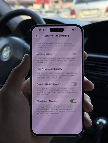 - Емкость аккумулятора по данным “Battery Health”: 86%