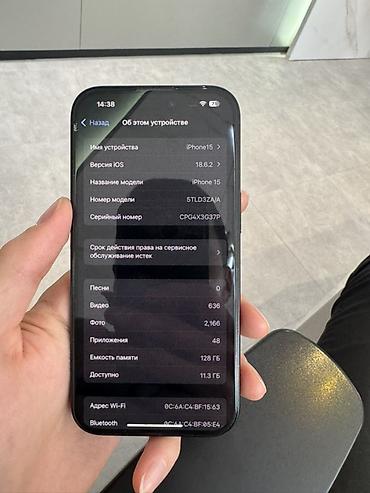 IPhone 15, 128 ГБ, чёрный - Модель: iPhone 15 (номер модели MTLD3CH/A) - Память: 128 ГБ (доступно около 44,13 ГБ на момент снимка) - iOS: 18.1.1 - Экран: 6.1", OLED (Dynamic Island) - Камеры: двой...