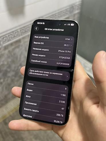 IPhone 15 Pro, 256 ГБ - Модель: iPhone 15 Pro (модель MTQA3CH/A) - Память: 256 ГБ, доступно 239,95 ГБ - iOS: 26.4 - Цвет корпуса: натуральный титановый (по фото) - Корпус из титана, плоские грани ...