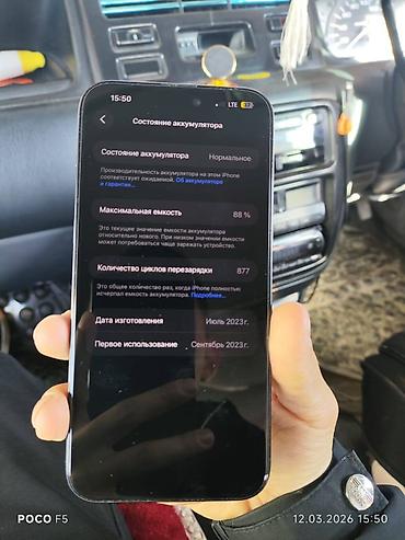 Цена срочная!И окончательная ! Без торга !Ниже не беспокоить! IPhone 15 Pro Max 512GB Black Titanium ! Зарегистрирован в ГСИ✅ АКБ 88% (родная), не менянный, не поднятый, зарядку держит день, увер...
