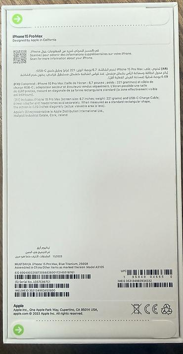 Продаю новый iPhone 15 Pro Max 256 GB в цвете Blue Titanium. Телефон абсолютно новый, коробка не вскрывалась, заводская пломба на месте.