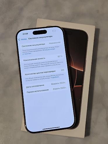 Продаю IPhone 16 Pro Max 256, Desert Titanium цвет натуральный титан (бежево‑золотистый оттенок). В комплекте фирменная коробка. АКБ 91% В идеальном состоянии! Не вскрывался! Все родное! Звоните!