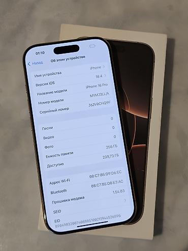 iPhone 16 pro 256 АКБ 90 Фейс тру тон все работает. Состояние идеальное. Коробки нет. Есть гарантия с цума. Не вскрытый. Воздух не проходит. Любые проверки. Сколов царапин нет