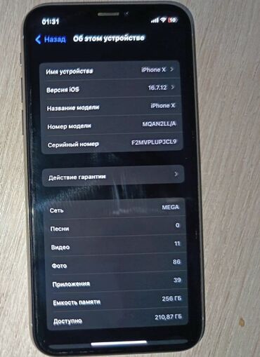 - Модель: iPhone X (номер модели MQAN2LL/A).