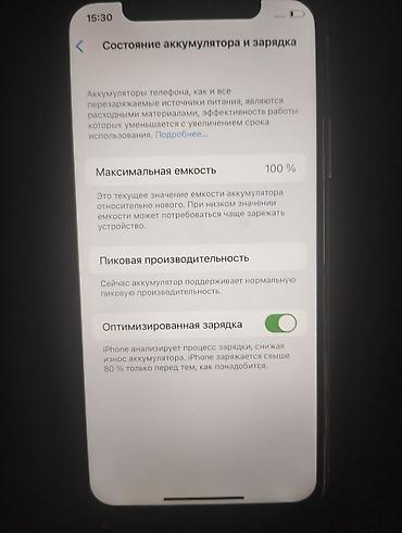 - Аккумулятор: максимальная ёмкость 100%, поддерживается нормальная пиковая производительность; включена «Оптимизированная зарядка»