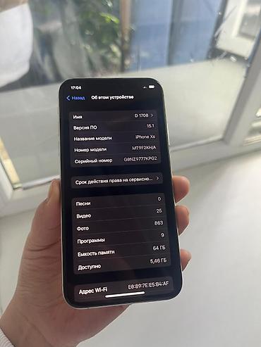 IPhone X, 64 ГБ, серебристый - Модель: iPhone X (номер модели MQAD2KH/A, на экране «Об этом устройстве» указано iPhone X) - Память: 64 ГБ (по снимкам: 71 фото, 26 видео; песни — 0) - iOS: 16.7.1(4...
