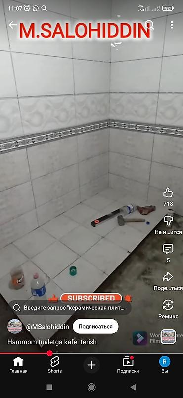 - Подрезка плитки под размер, ровные швы, система выравнивания плитки.
