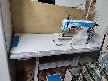 Промышленная распошивальная швейная машина JACK (плоскошовная, coverstitch) на столе.