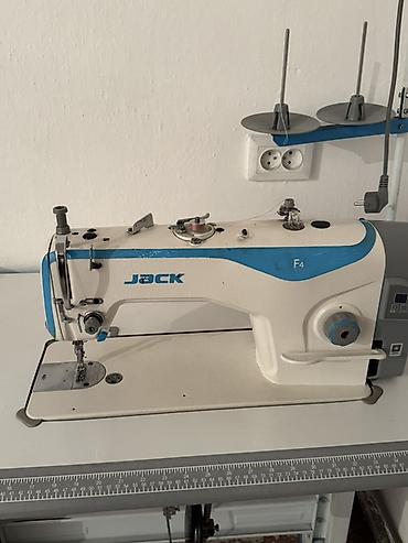 Промышленная швейная машина JACK F4 в комплекте с рабочим столом и педалью.