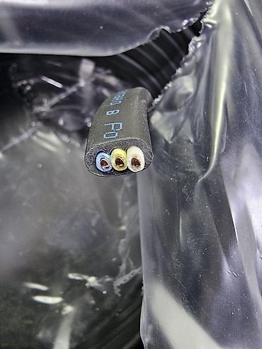 - Цветовая маркировка жил: синий (N), жёлто‑зелёный (PE), белый/коричневый (фаза) — для 3‑жильного варианта