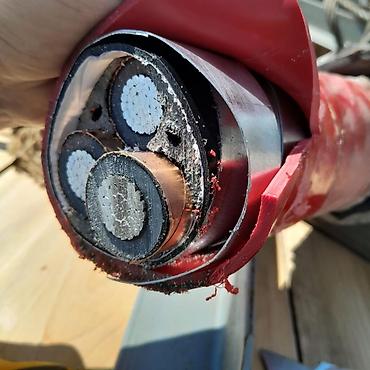 - Силовые и слаботочные кабели в ассортименте; на фото – образцы разрезов и бухта.