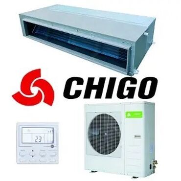 Канальный кондиционер CHIGO (сплит‑система) - Тип: канальная сплит‑система для скрытого монтажа в потолке/фальшпотолке. - Состав: внутренний канальный блок, внешний компрессорно‑конденсаторный бло...
