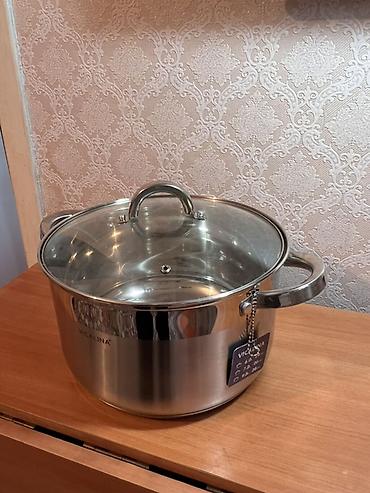 Кастрюля Vicalina из нержавеющей стали с крышкой из закалённого стекла.