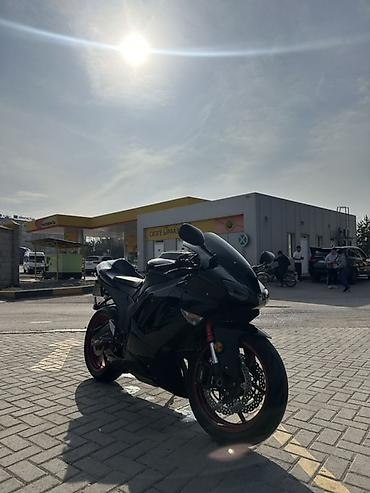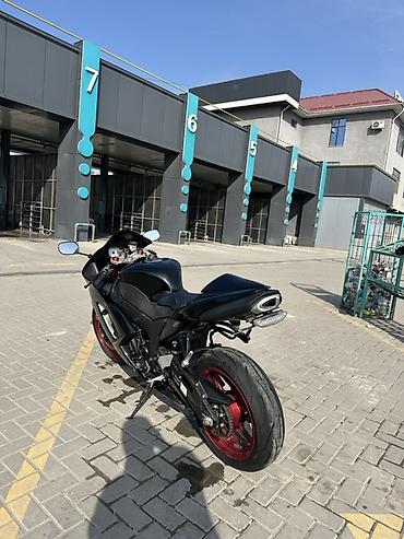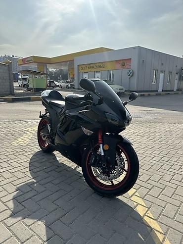 Спортивный мотоцикл класса спорт-туринг в черном цвете с ярко‑зелеными литыми дисками. Основные особенности: - Аэродинамический обвес с высоким ветровым стеклом - Двухфарная светодиодная оптика, я...