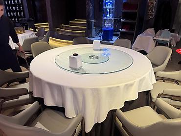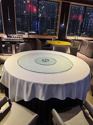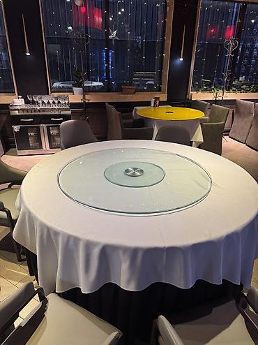 Китайская крутящаяся стекло — это обеденные столы с вращающимся центральным стекольным диском по-китайски ,который позволяет всем гостям легко доставать блюда, размещенные на нем, символизируя единство и гармонию. Они бывают цельными столами или съёмными поворотными центрами для любого стола. Популярны в китайских ресторанах и дома.Продается только стекло .В хорошем состоянии