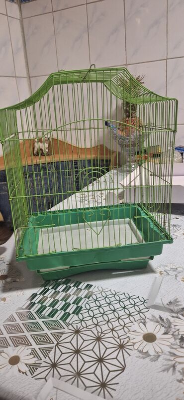 Клетка для попугаев зеленая - Материал: металлические прутья с порошковым покрытием, пластиковый поддон. - Форма: с декоративной волной в верхней части, фигурные элементы на фасаде. - Дверцы: одна...