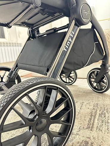 Прогулочная коляска Tiny Ti (бренд на раме) в универсальном серо‑черном цвете.