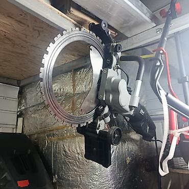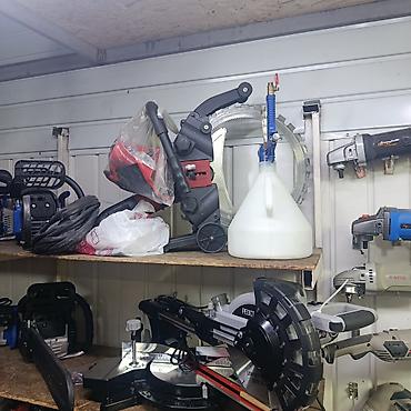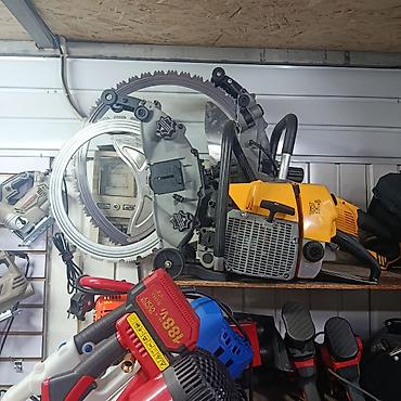 - Профессиональная кольцевая пила с приводом от бензодвигателя/электродвигателя (на фото — несколько модификаций с кольцевыми алмазными дисками).