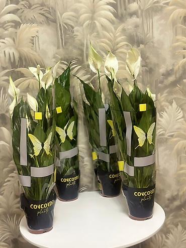 Антуриум в декоративном высоком кашпо - Живые комнатные растения
