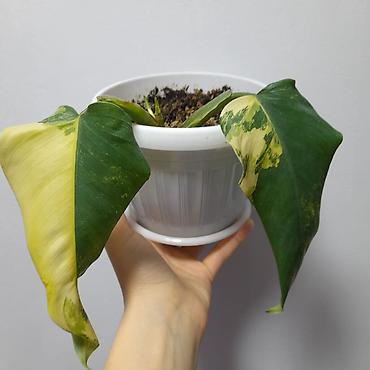 - Филодендрон с вариегатностью (крупные листья с зелёными и кремово‑желтыми секторами). Нужен свет без прямых лучей для сохранения пёстрой окраски, полив после подсыхания верхнего слоя почвы, высокая влажность.