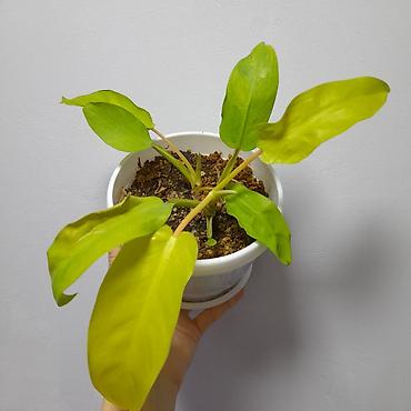 - Филодендрон лимонно‑зеленого окраса (вечно‑зелёные овальные листья яркого лаймового оттенка). Любит яркий рассеянный свет, регулярный, но умеренный полив, рыхлый воздухопроницаемый субстрат.
