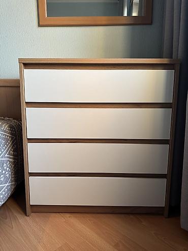 - Четыре выдвижных ящика на направляющих, подходят для хранения одежды, белья и мелочей.