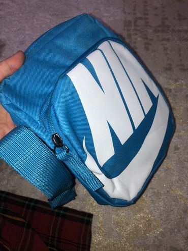 - Цвет: ярко‑голубой с крупным белым логотипом Nike на фронтальной панели.