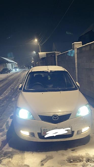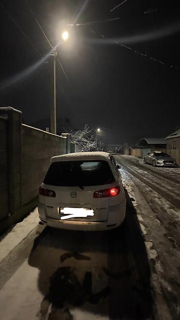 Mazda Premacy, компактвэн/минивэн белого цвета. Кузов и экстерьер: - 5‑дверный кузов, рейлинги и поперечины на крыше для багажника/бокса - Ветровик-муха/дефлектор капота с надписью Premacy - Тонир...