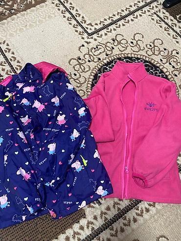 Детские куртки# в отличном состоянии# с капюшоном, комплект из двух моделей. Район Орто-Сай рынок 1) Серая утеплённая парка BINGKAXIONG (BKX) - Рост: на ярлыке 98 cm. - Внешний материал: плотная не...