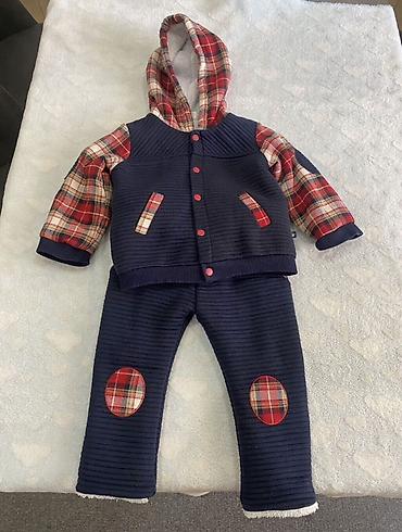 Детский комплект M&S, 2 предмета, для мальчика 6–9 месяцев (рост RU 72–46, ориентир: до 9 кг, рост ~72 см) Толстовка в стиле бомбер. Внутри мягкий начёс для тепла и комфорта. - Брюки/джоггеры тёмн...