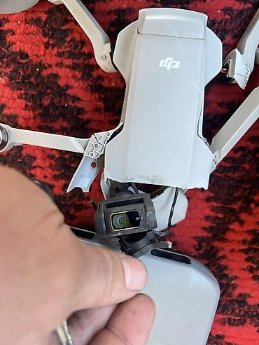 - На корпусе и лучах видны поломки; подвес и камера присутствуют.