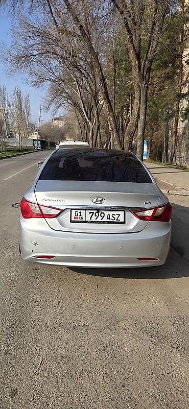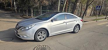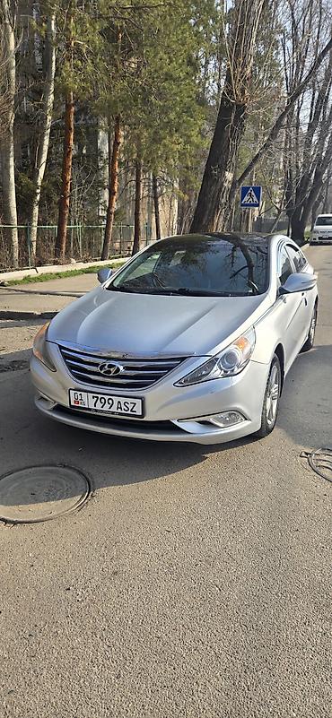 Hyundai Sonata, серебристый седан (рестайлинг). Основные характеристики: - Кузов: 4-дверный седан, серебристый металлик - Экстерьер: фирменная каскадная решётка радиатора, светодиодные ДХО в бампе...